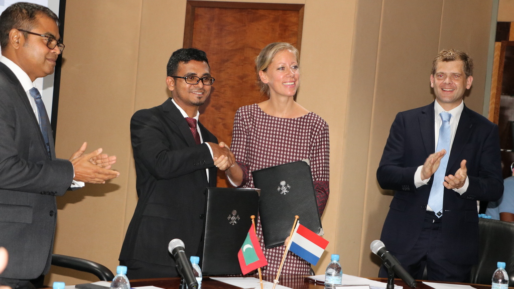 މި އެއްބަސްވުމުގައި ދިވެހި ސަރުކާރުގެ ފަރާތުން ސޮއިކުރެއްވީ މިނިސްޓަރ އޮފް ފިނޭންސް އެންޑް ޓްރެޜަރީ އަހުމަދު މުނައްވަރެވެ. ނެދަލޭންޑްސްގެ ސަރުކާރުން ސޮއިކުރެއްވީ ، ސްރީލަންކާގައި ހުންނަ ނެދަލެންޑް ގެ މިޝަންގެ ޑެޕިއުޓީ ހެޑް، މިސް. އީވާ ވެން ވޯސެމްއެވެ.