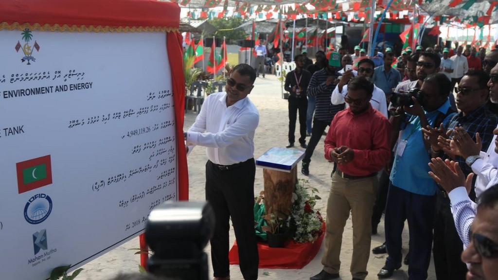 މިނިސްޓަރ އަލްފާޟިލް ޠާރިޤް އިބްރާހީމް ބ. ކެންދޫގައި އާރް.އޯ ޕްލާންޓާއި ސްޓޯރޭޖް ޓޭންކް ޤާއިމުކުރުމުގެ ޢަމަލީ މަސައްކަތް ފައްޓަވައިދެއްވައިފިއެވެ. ރައީސުލްޖުމްހޫރިއްޔާ ޢަބްދުﷲ ޔާމީން ޢަބްދުލް ޤައްޔޫމްގެ ހާޒިރުގައި އެ މަނިކުފާނު މި މަސައްކަތް ފައްޓަވައިދެއްވީ އެކަމަށްޓަކައި ބ. ކެންދޫގައި މިއަދު ބޭއްވި ވަރަށް ޚާއްސަ ރަސްމިއްޔާތެއްގައެވެ.