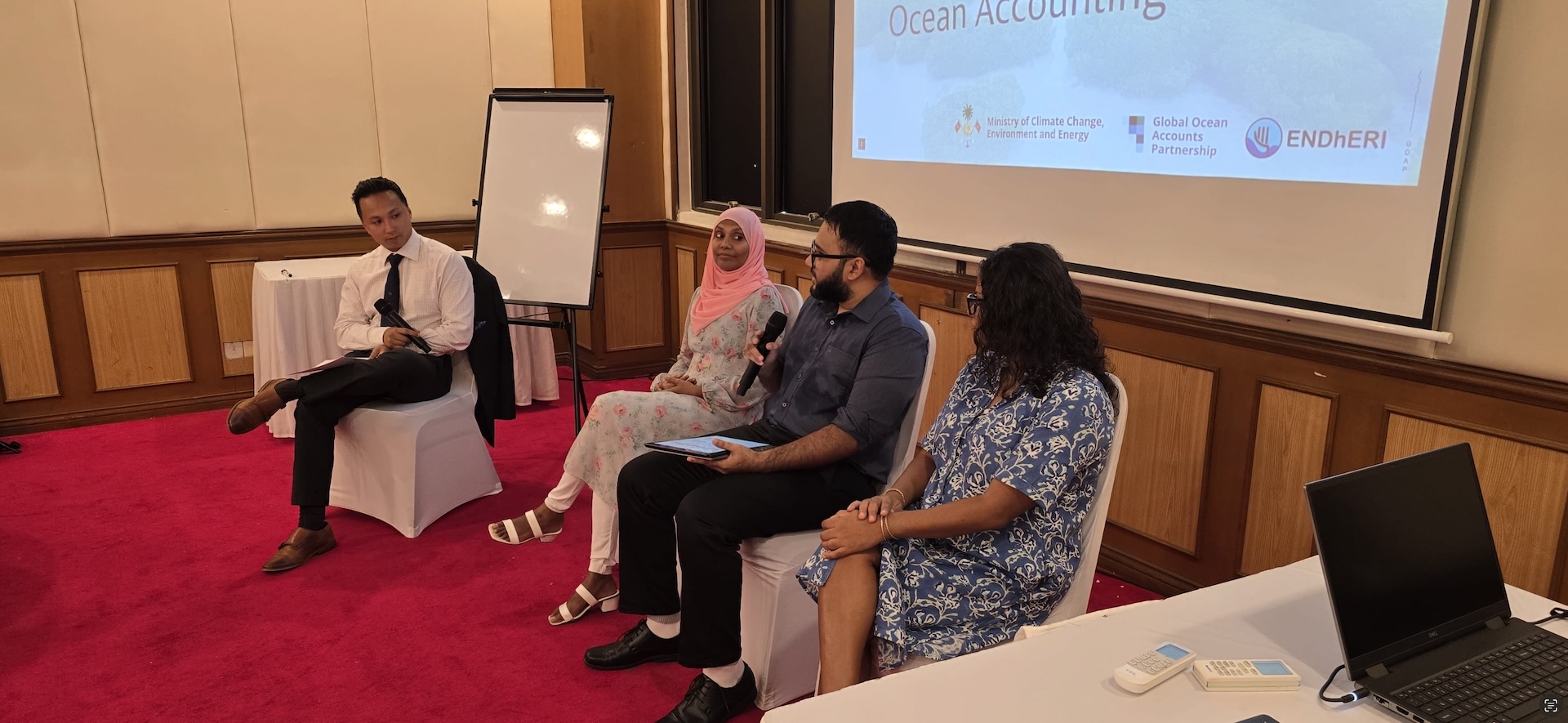 The workshop included presentations on the Maldives NAP project overview, the draft NAP Roadmap, the Stakeholder Engagement Strategy, and the draft model for integrated institutional mechanisms. These were delivered by Ms. Zainab Gulisthan, NAP Project Coordinator; Mr. Moosa Zameer, Consultant; and Ms. Jauza Khaleel, Senior Climate Change Adaptation Consultant. Participants then engaged in breakout sessions and a World Café-style discussion to review and provide feedback on the roadmap objectives, stakeholder mapping, and guiding principles for adaptation planning.