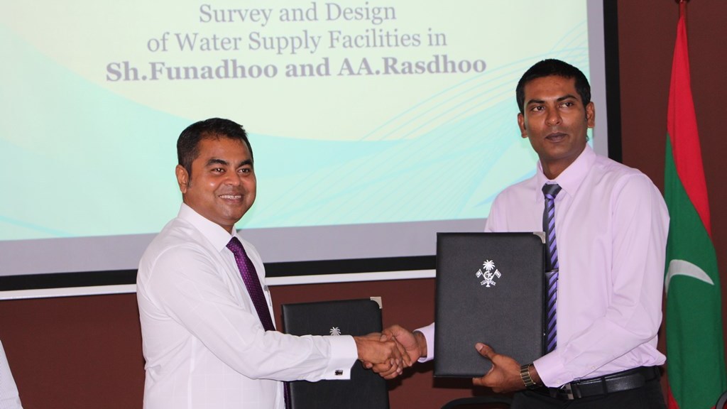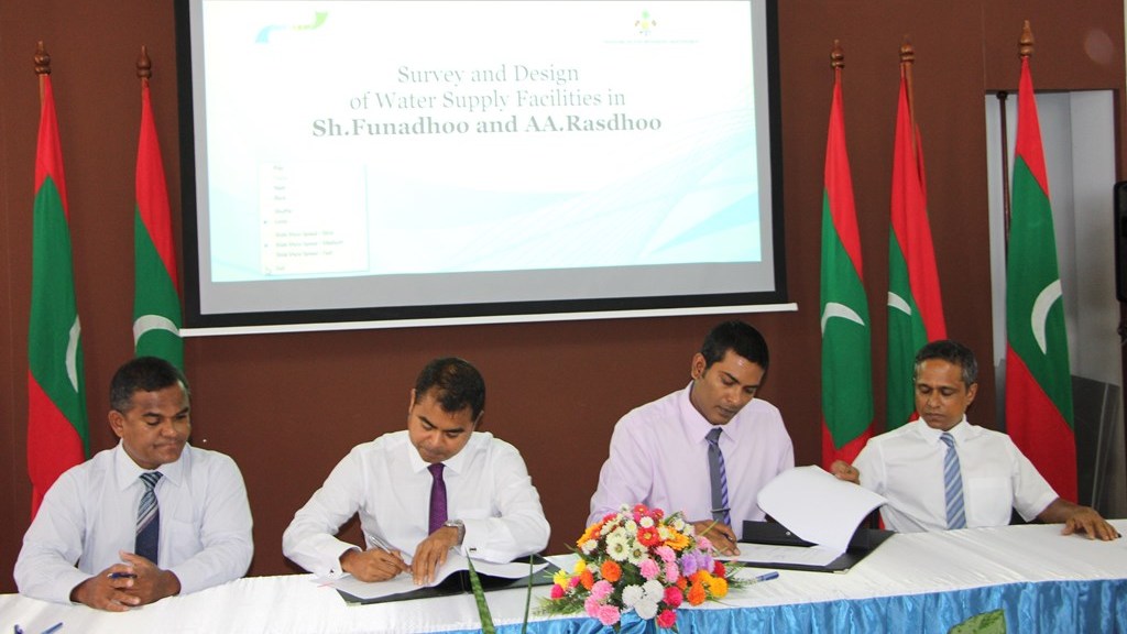 MoU signed for survey and design of water supply facilities in Shaviyani atoll Funadhoo and North Alifu atoll Rasdhoo islands