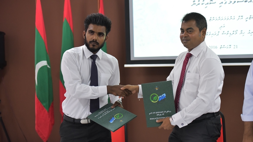 Contract signed to upgrade Waste Management Centre of Noonu atoll Kendhikulhudhoo. This contract was awarded to New Hiyaa Investment. Minister Mr. Thoriq Ibrahim signed the contract while the Director of New Hiyaa Investment, Mr. Hussein Shimau signed the contract on behalf of the company.