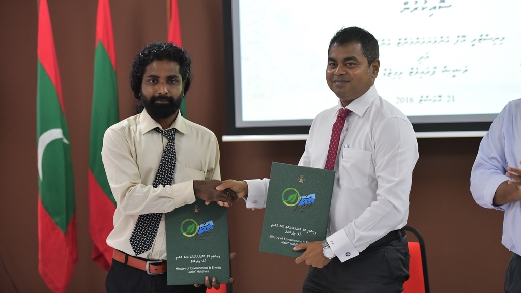 Contract signed to upgrade Waste Management Centre of Raa atoll Fulhadhoo. This contract was awarded to Thashisha Private Limited. Minister Mr. Thoriq Ibrahim signed the contract while the Managing Director of Thashisha Private Limited, Mr. Ahmed Shazeen signed the contract on behalf of the company.