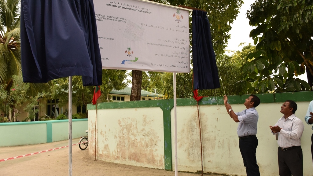 The Sewerage Facility to be established in H.Dh. Nolhivaram was inaugurated in a ceremony held today at H.Dh. Nolhivaram by Hon. Thoriq Ibrahim, Minister of Environment and Energy. The establishment of this project is carried out by Male Water and Sewerage Company (MWSC).