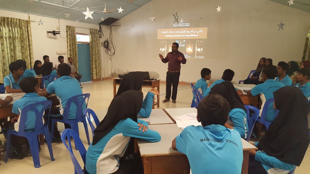 Multiple workshops for schools were conducted to increase awareness of energy end-users, the public, students and the youths under the project Strengthening Low Carbon Energy Island Strategies (LCEI). The project was funded by the Global Environment Facility (GEF) and executed by the Ministry with implementation support from UN Environment.