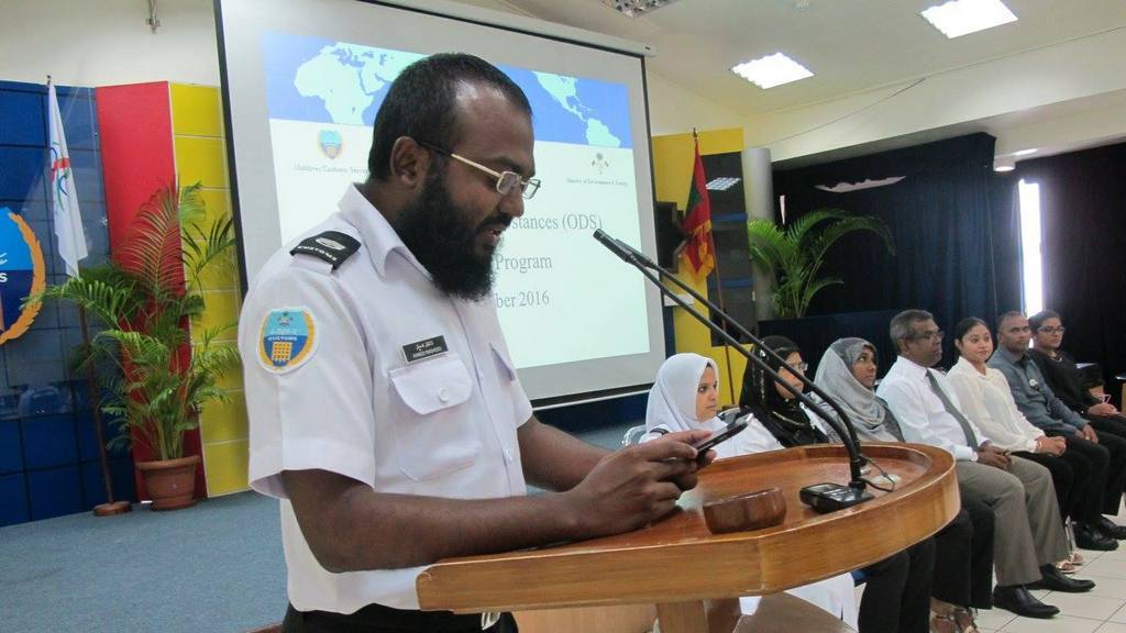 At today’s ceremony, Dr. Abdulla Naseer emphasized the role of customs officers in protecting the environment, by enforcing international treaties, such as the Montreal Protocol. He thanked the Maldives Customs Services for their continuous support in healing the ozone layer, and anticipates this enthusiasm in years to come. At the ceremony, Chief Superintendent of Maldives Customs Service, Fathmath Sodhaf highlighted the importance of these training programmes and that such achievements would not be found without collaborations as such.