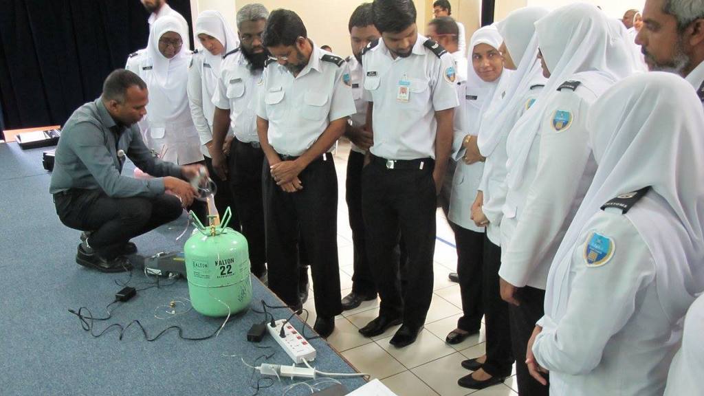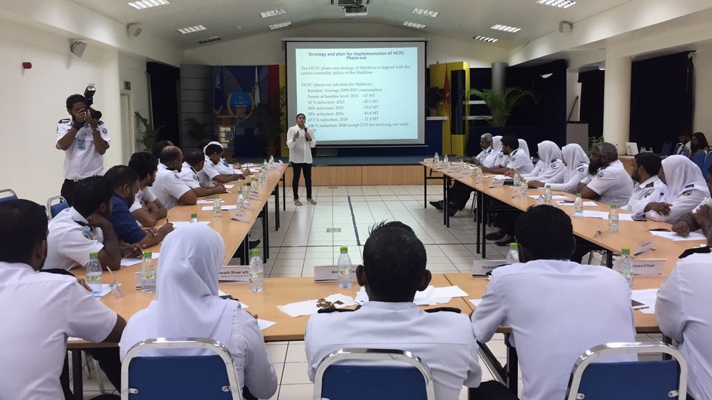 A training programme was conducted by Maldives Customs service in collaboration with Ministry of Environment and Energy today. The one day training programme for enforcement officers was held as part of the HCFC Phase-out Management Plan of the Montreal Protocol on substances that deplete the Ozone layer.