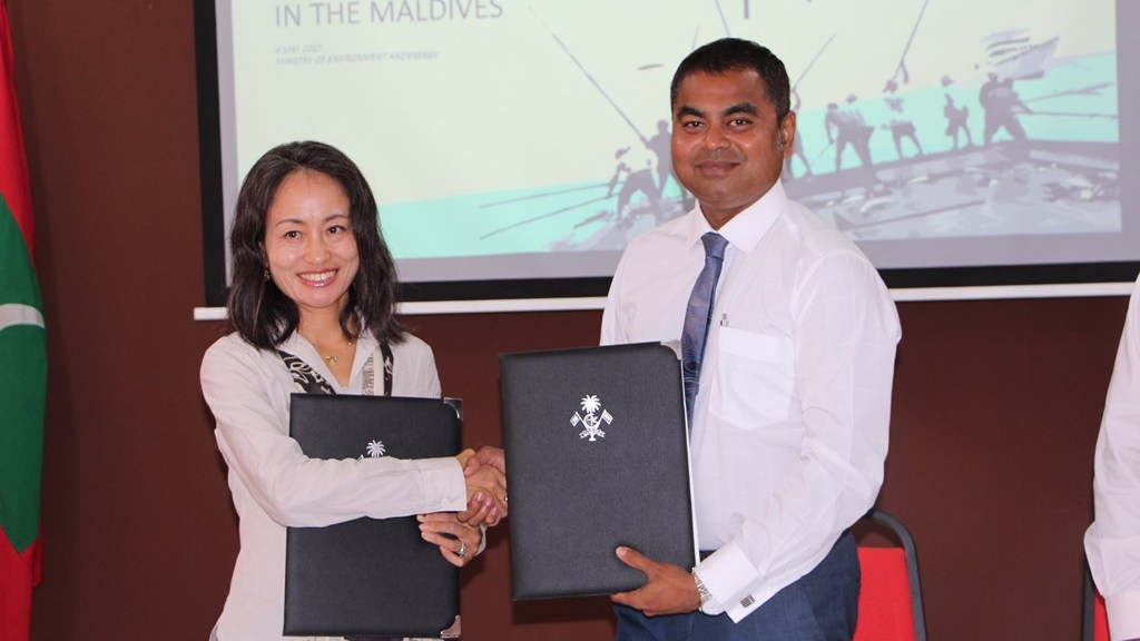 Demonstration Project Agreement for HCFC free low GWP alternatives in refrigeration in fisheries sector in the Maldives signed between the Ministry and United Nations Development Programme (UNDP). Minister Honorable Thoriq Ibrahim signed the agreement while the United Nations (UN) Representative to the Maldives, Ms. Shoko Noda signed the contract on behalf of UNDP.