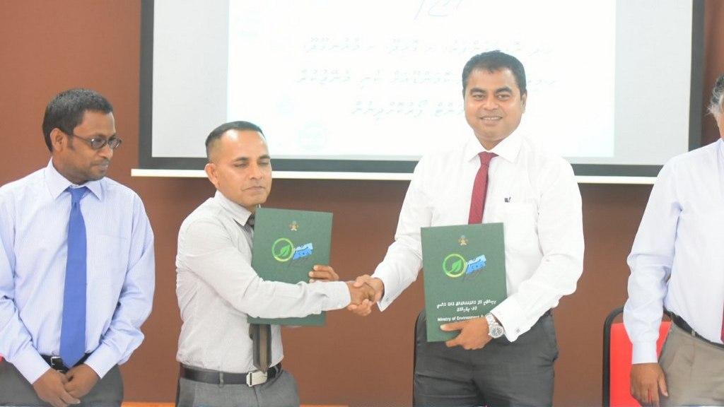 Contract signed for the Supply and Delivery of Waste Management equipment to 05 islands including Haa Dhaalu atoll Nolhivaranfaru, Shaviyani atoll Goidhoo, Shaviyani atoll Maaun’goodhoo, Shaviyani atoll Milandhoo and Shaviyani atoll Komandoo island. The contract was awarded to Neo Med Maldives Private Limited. Minister of Environment and Energy, Mr. Thoriq Ibrahim signed the contract while the Managing Director of Neo Med Maldives Private Limited, Mr. Hussain Rasheed signed the contract on behalf of the company.