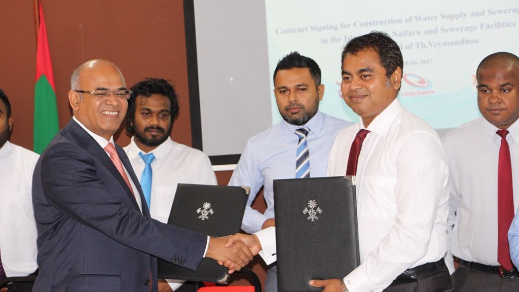 Contract signed for construction of water supply and sewerage facilities in Lhaviyani atoll Naifaru, sewerage facilities in Thaa atoll Veymandoo