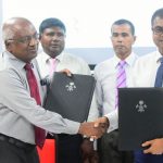 Contract signed for the construction of Sewerage Facilities in Kaafu atoll Himmafushi, Kaafu atoll Thulusdhoo and Haa Dhaalu atoll Nolhivaranfaru island. This contract was awarded to a Srilankan company, Sierra Construction Private Limited. Minister of Environment and Energy, Honorable Thoriq Ibrahim signed the contract while the Project Director of Sierra Construction Private Limited, Mr. J.A.C Prabash.