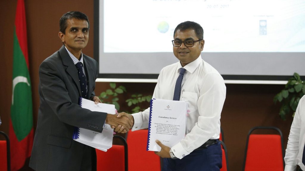 Consultancy services for the Design and Supervision of Rainwater Harvesting Systems in 45 islands have been awarded to Shah Technical Consultants Private Limited today, 20th July 2017. The Consultancy Agreement was signed by Minister Thoriq Ibrahim on behalf of Ministry of Environment and Energy and Director of Shah Technical Consultants Mr. Gautam M Shah.