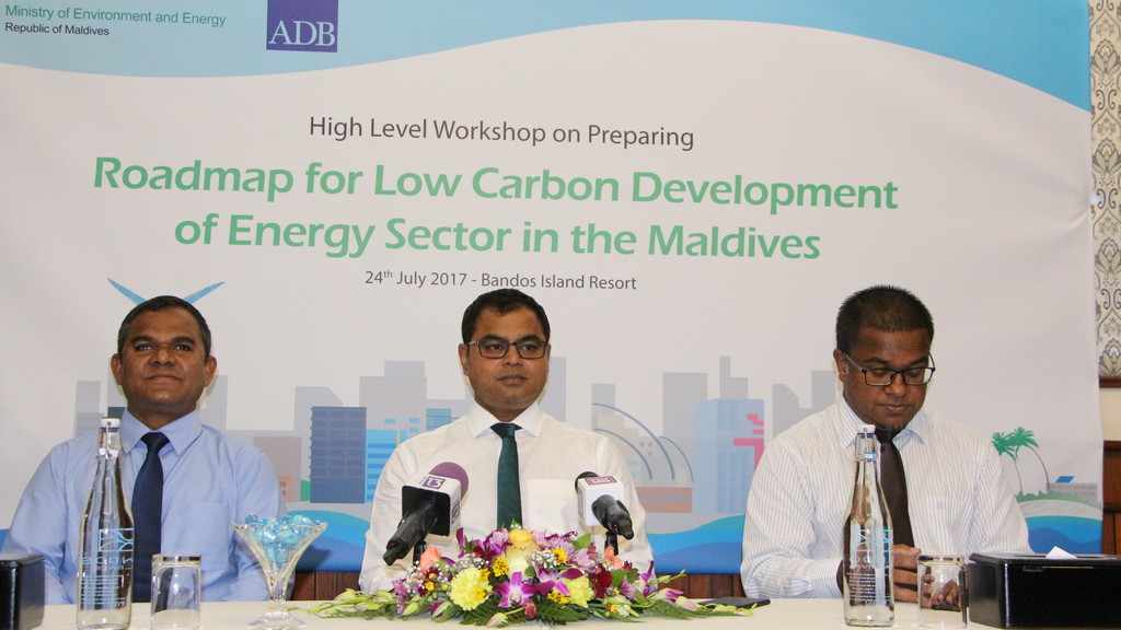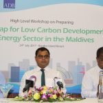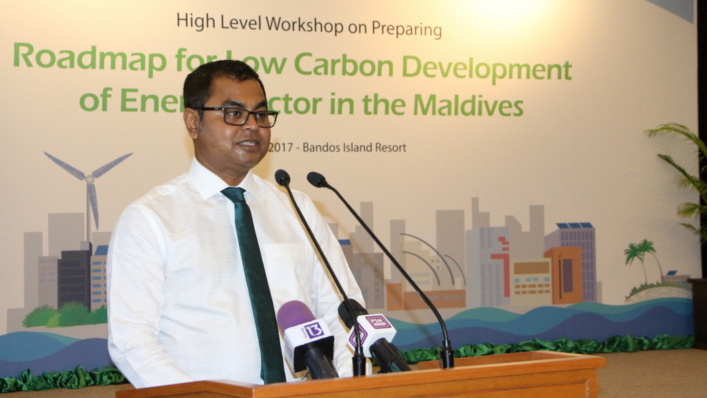 High Level workshop on Preparing Roadmap on Low Carbon Development of Energy Sector in Maldives conducted was conducted today at Bandos Island Resort, Maldives. This workshop was inaugurated by Minister of Environment and Energy, Honorable Thoriq Ibrahim. In his remarks, he said that the government has an objective to install renewable energy at least up to 30 percent of the daytime demand of electricity in all inhabited islands before the end of 2018. He also highlighted that recently, 500,000 LED tube lights have been distributed to households, government institutions and non-governmental organizations.