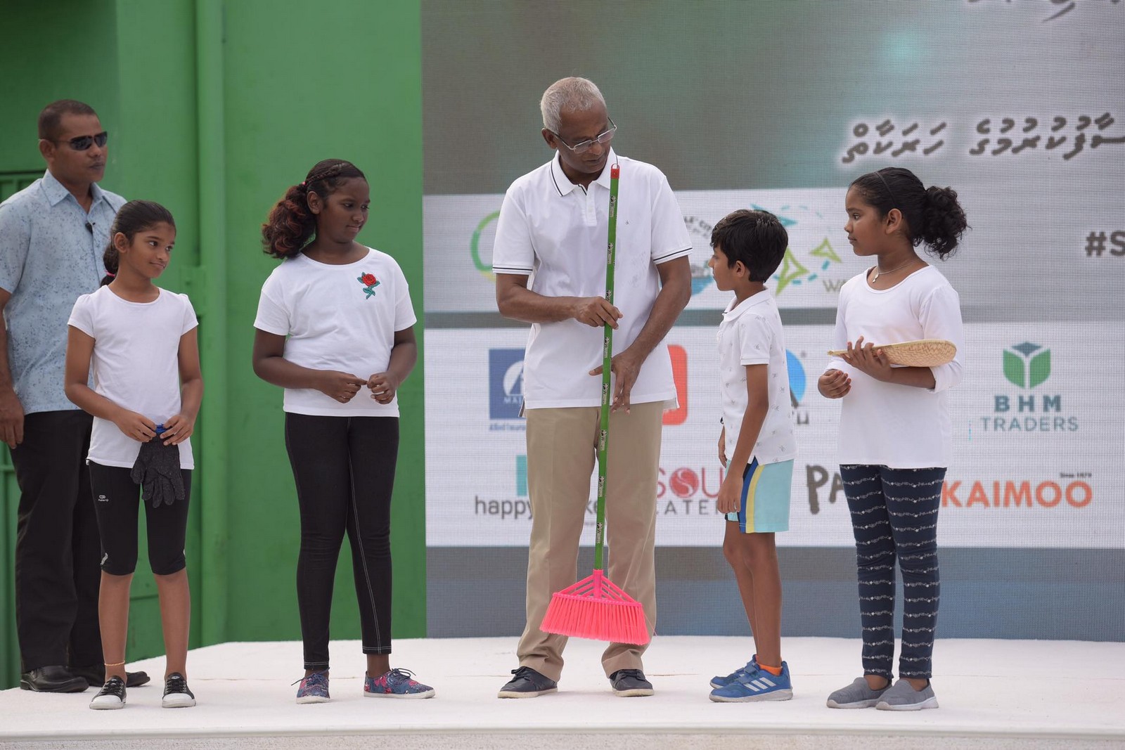 Speaking at the launching ceremony, President Solih appealed to everyone to contribute to this national campaign and take on their personal responsibility of keeping the Maldives clean. He pointed out that household waste mostly consists of single-use plastic than organic waste, and urged everyone to strive to eliminate single-use plastic from their daily lives.