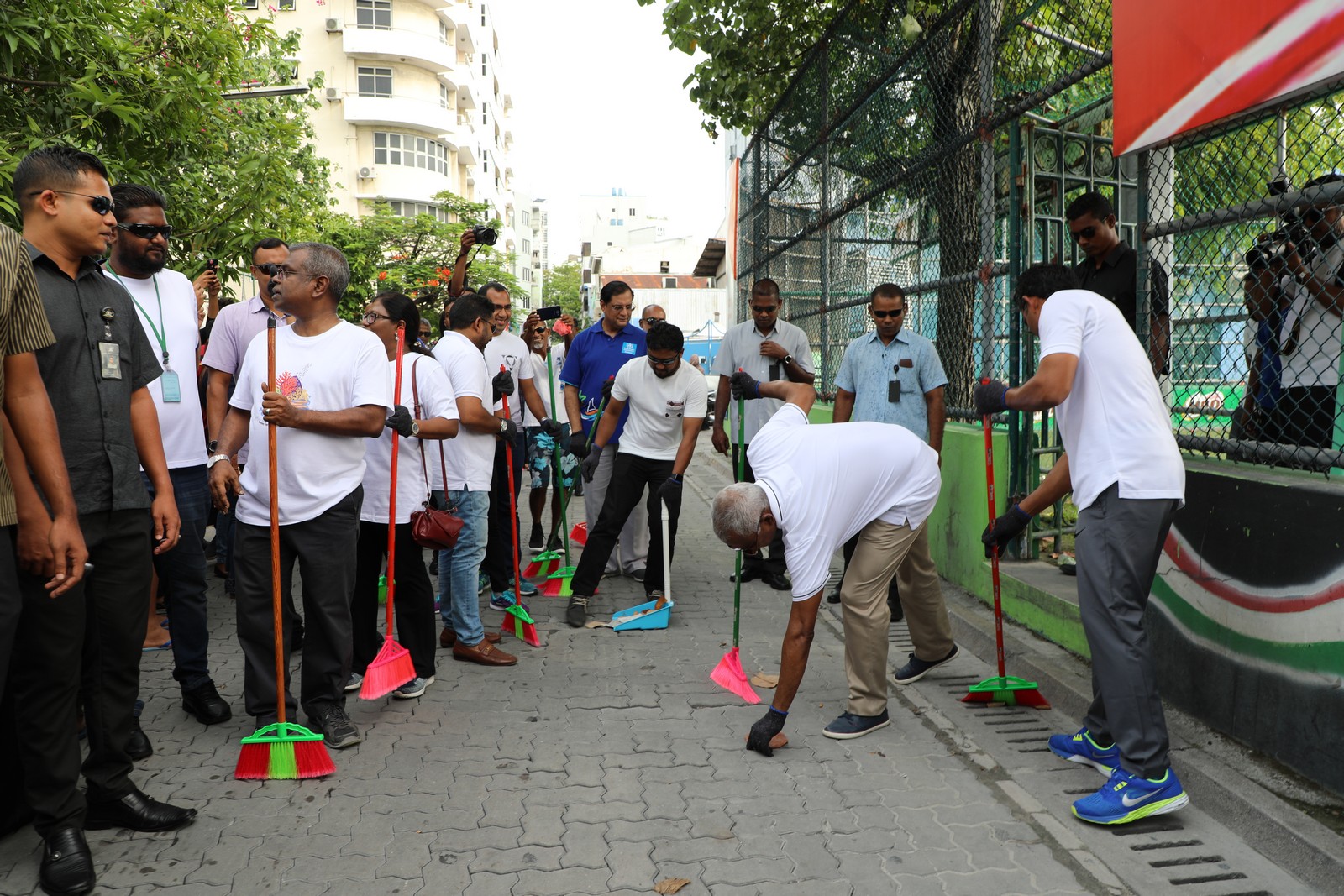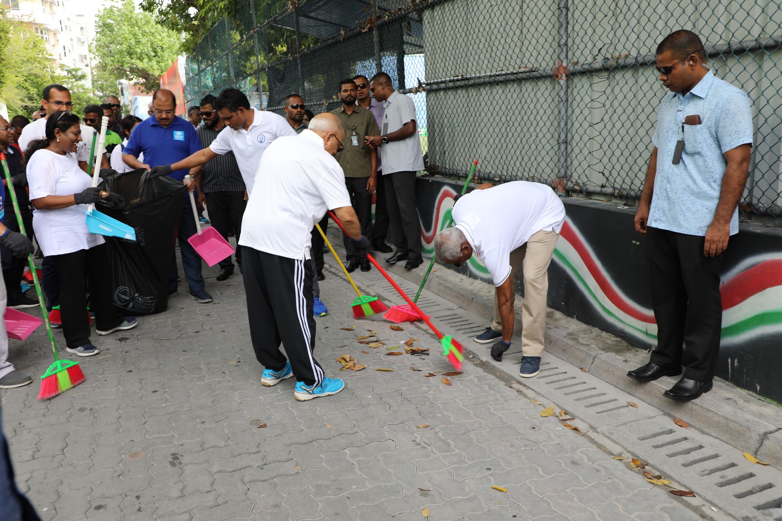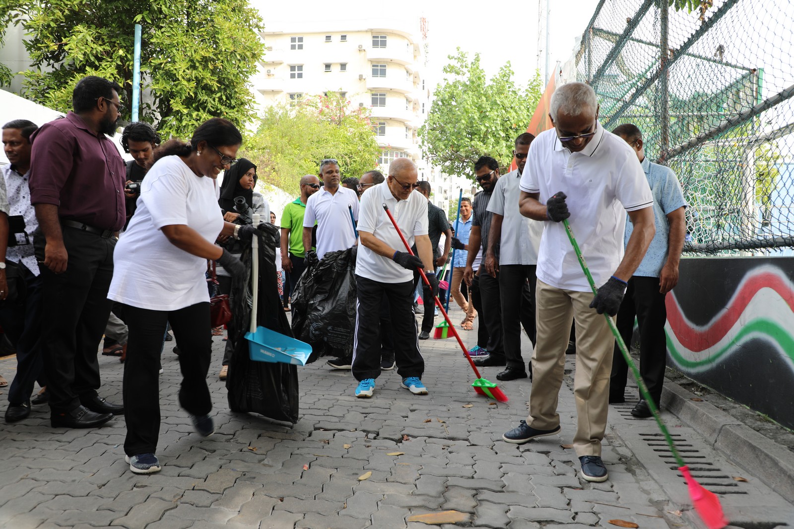 President Ibrahim Mohamed Solih officially launched the National Cleaning Exercise, as pledged in his ‘First 100 Days Goals. In this ceremony, president was accompanied by Vice President Faisal Naseem, former president Maumoon Abdul Gayoom, senior officials of Ministry of Environment and government officials.