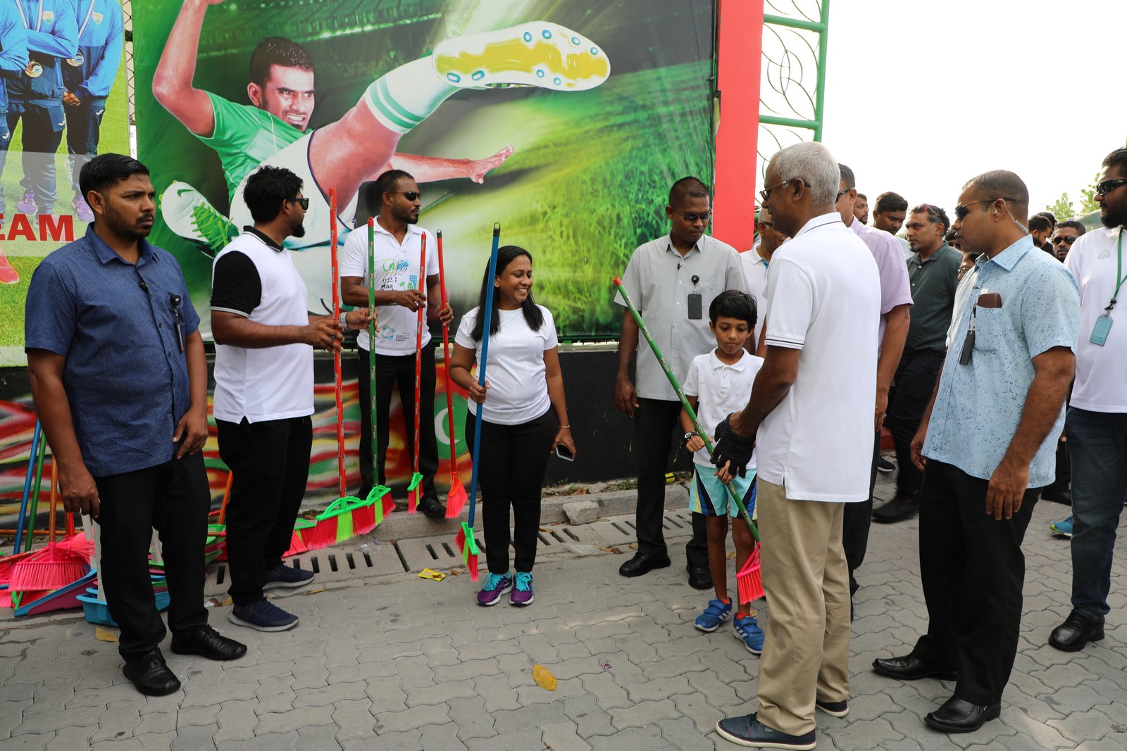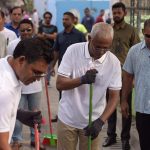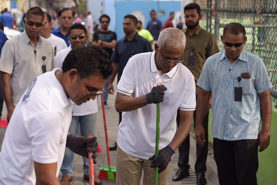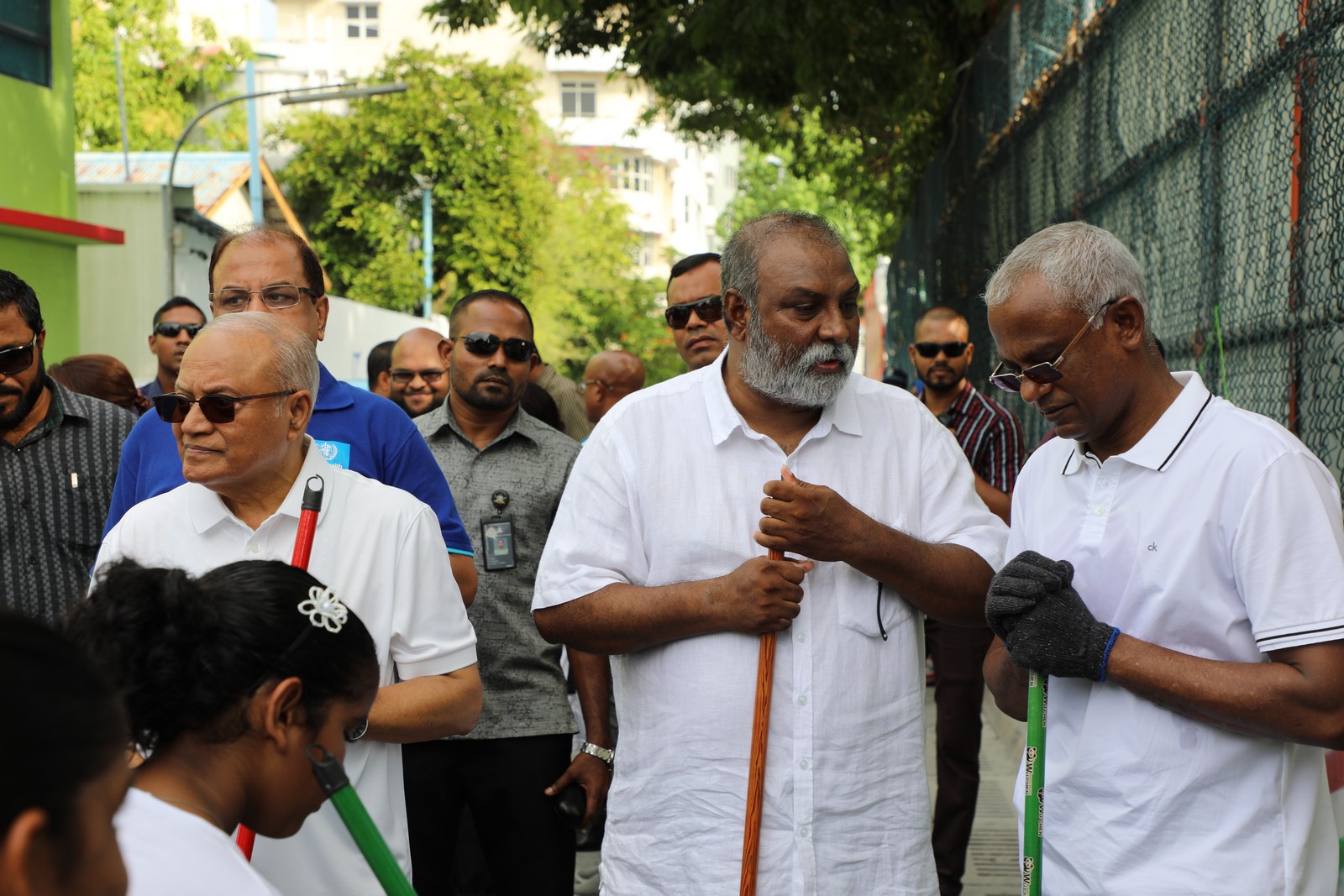 President Ibrahim Mohamed Solih officially launched the National Cleaning Exercise, as pledged in his ‘First 100 Days Goals. In this ceremony, president was accompanied by Vice President Faisal Naseem, former president Maumoon Abdul Gayoom, senior officials of Ministry of Environment and government officials.