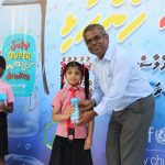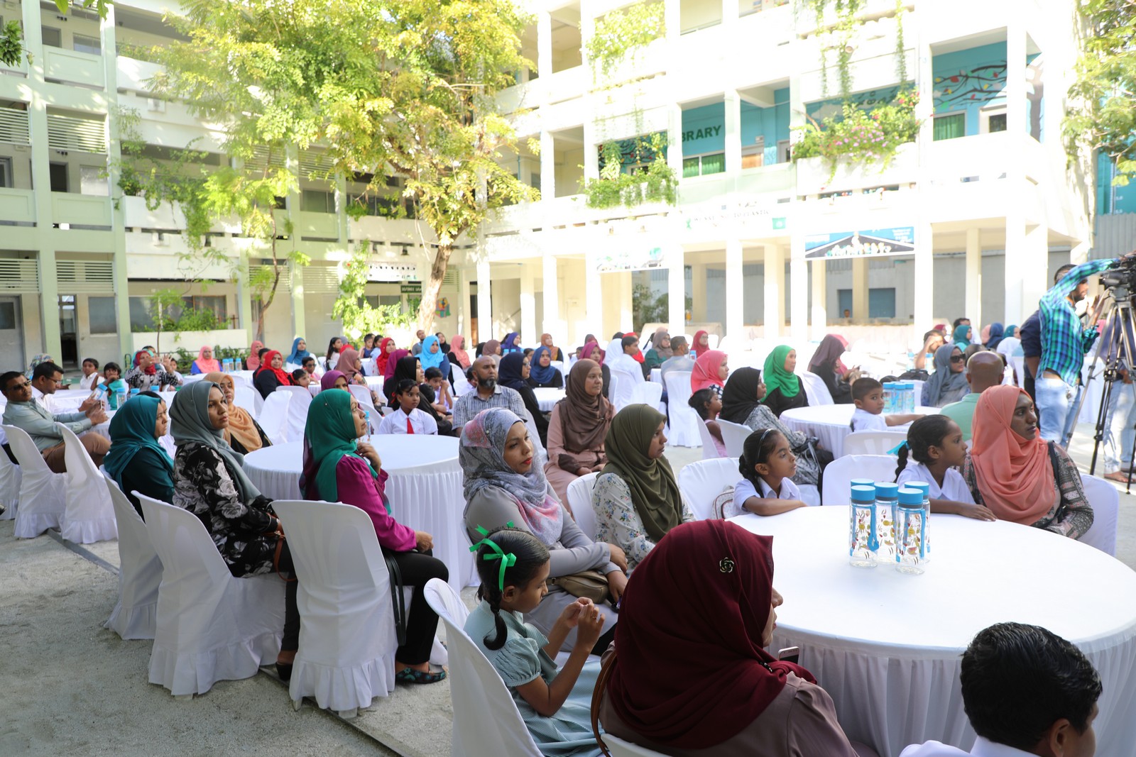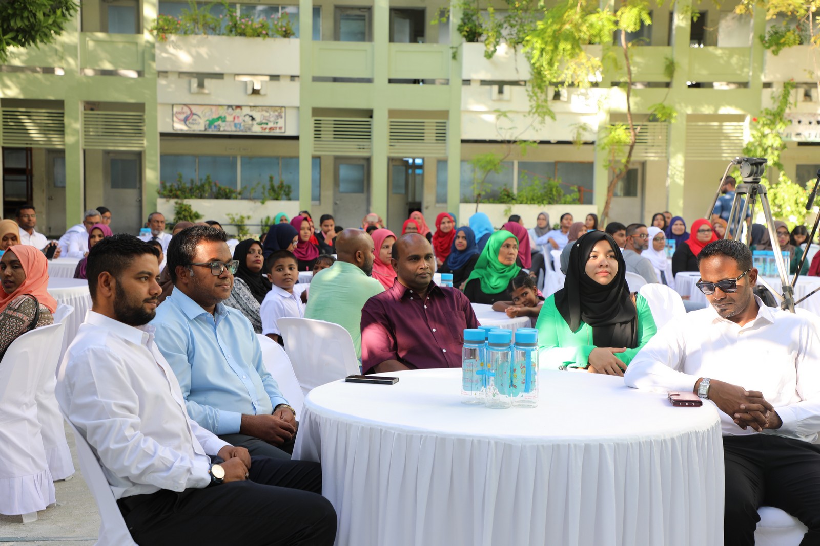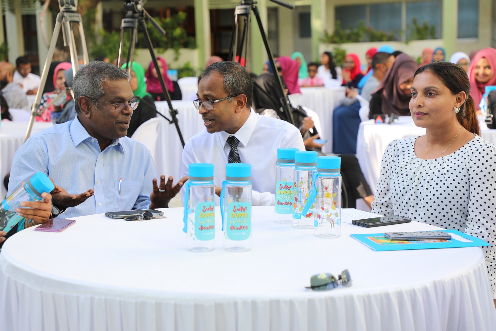 The National Campaign to reduce plastic bottles was launched today at Kalaafaanu school. The main objective of this campaign is to create awareness among children regarding the harmful impacts of plastics for the environment. This is a part of first 100 days Action Plan of President His Excellency Ibrahim Mohamed Soilih. To reduce single-use plastics, Ministry of Environment in partnership with Ministry of Education and United Nations International Children’s Emergency Fund (UNICEF) has initiated a programme to distribute reusable bottles for first graders in every school. In today’s ceremony, reusable bottles ‘Super Fenfulhi’ were handed over to a total of 15 schools. The ‘Super Fenfulhi’ were handed over to the schools by Minister of State for Environment Dr. Abdulla Naseer and Minister of Education Dr. Aishath Ali.