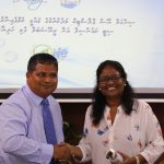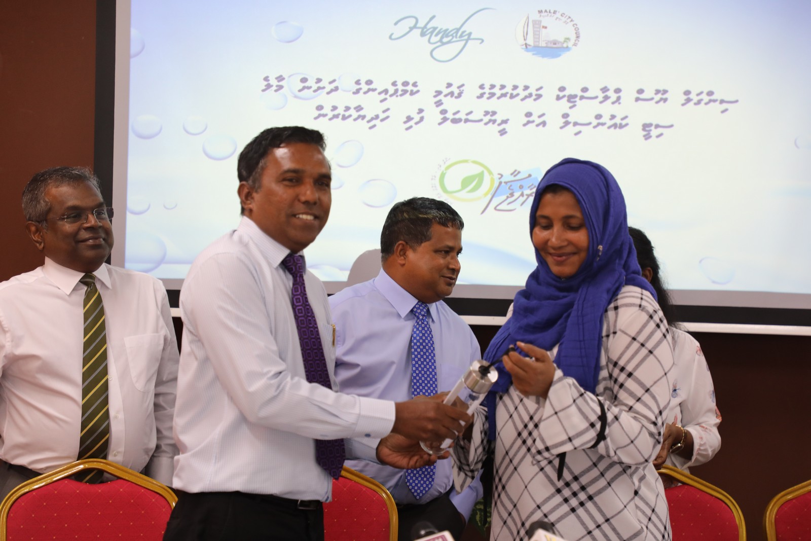 The reusable bottles were handed over to the Mayor of Male’ city council Ms. Aishath Shifa by the Minister of Environment Dr. Hussain Rasheed Hassan. In this ceremony a total of 100 reusable bottles were handed over to Male’ city council today under the campaign. The reusable bottles were provided to the Ministry by Handy Waters, Maldives.