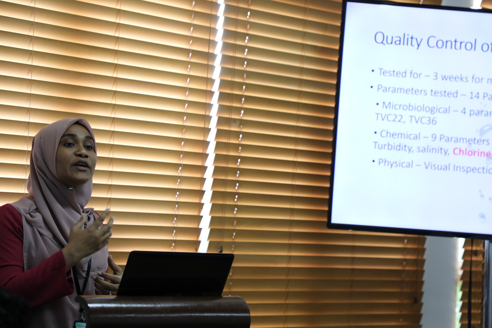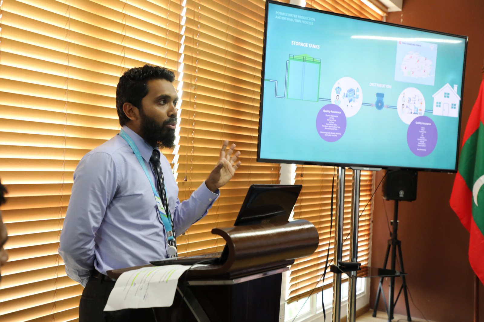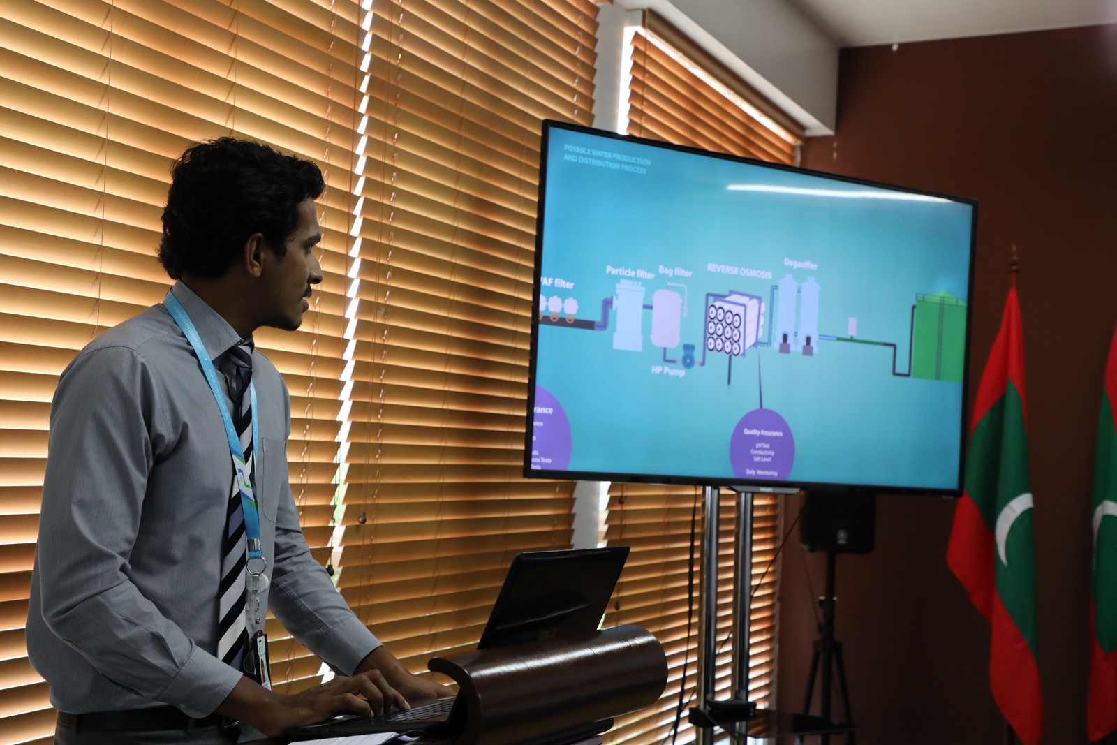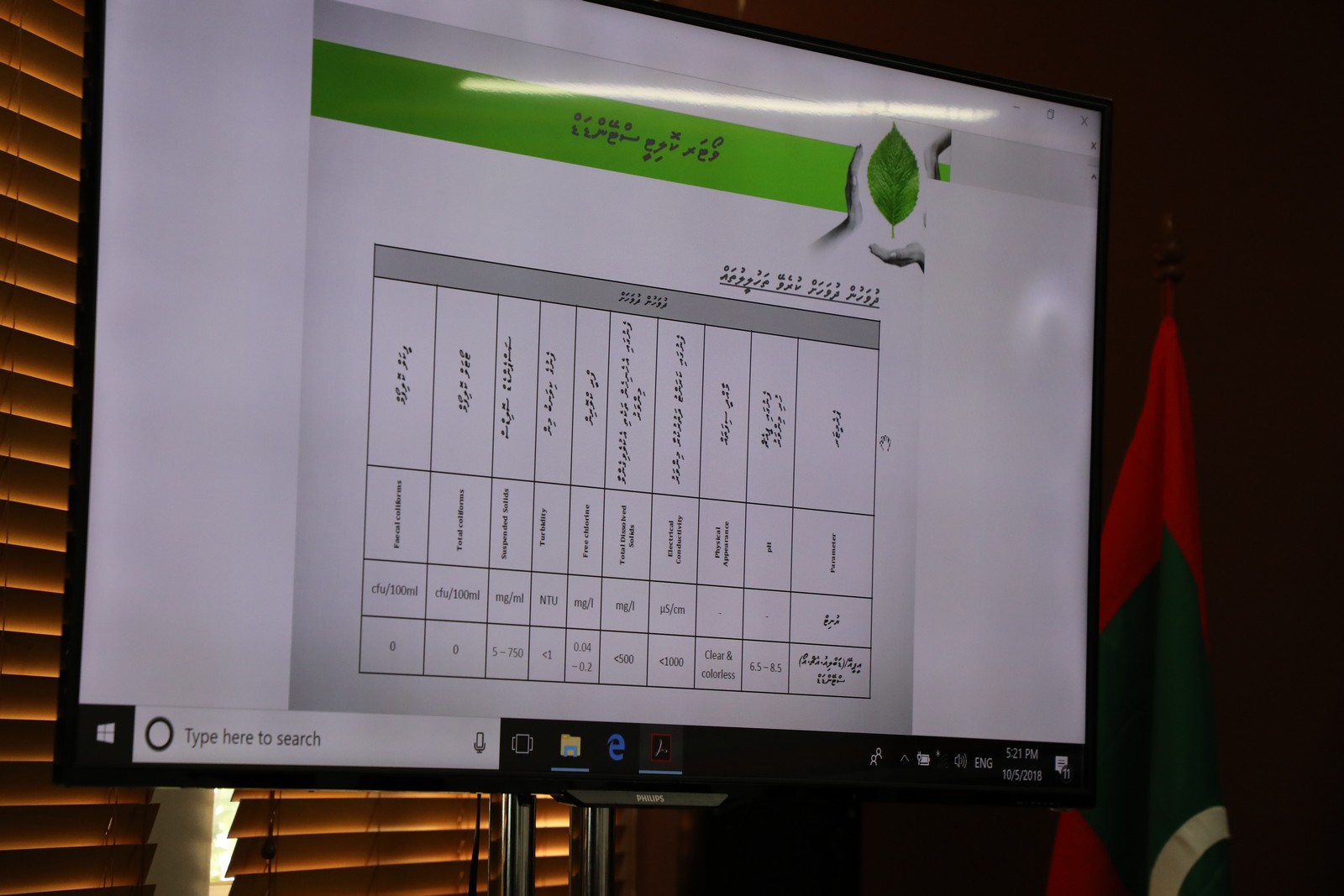 A media event was held today at the Ministry, to ensure the safety of tap water for public consumption. In this event, presentations regarding tap water were given by technical staff of Environmental Protection Agency (EPA), Maldives Food and Drug Authority (MFDA) and Male’ Water and Sewerage Company Pvt. Ltd. (MWSC). It is a part of the 100 days Action Plan of President Ibrahim Mohamed Solih, to ensure the safety of tap water for public consumption.